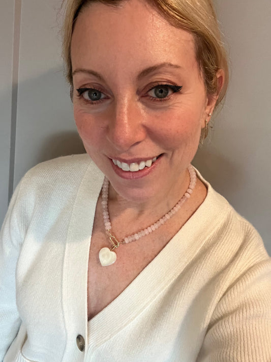 Pink Jade Mother of Pearl Heart on Carabiner Necklace