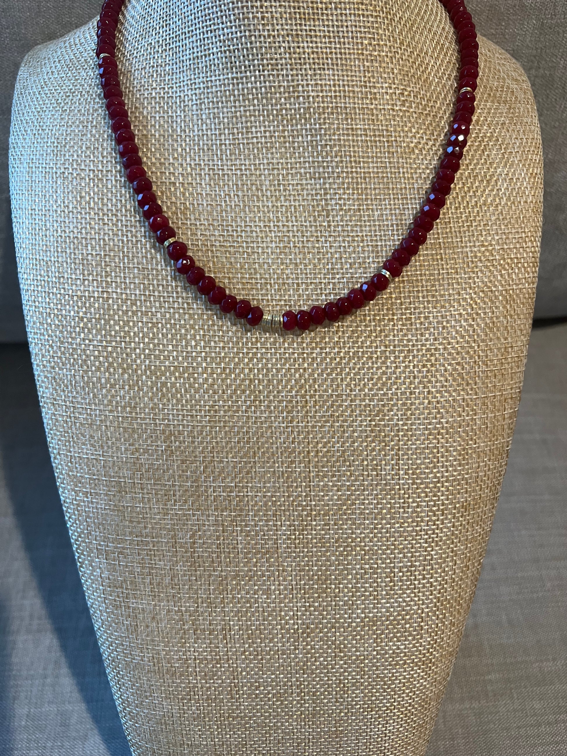 Adjustable faceted bead with cranberry hue. Wear from 15-17" lengths. This necklace is perfect for stacking and layers well either all colors. Get yours