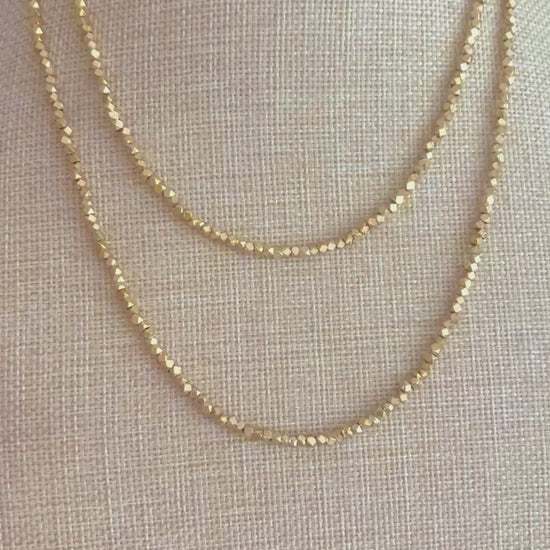 Gold plated faceted bead necklace. Perfect for layering and available in multiple lengths. This piece is a go to and sure to be worn on repeat. Longer lengths can be doubled .
