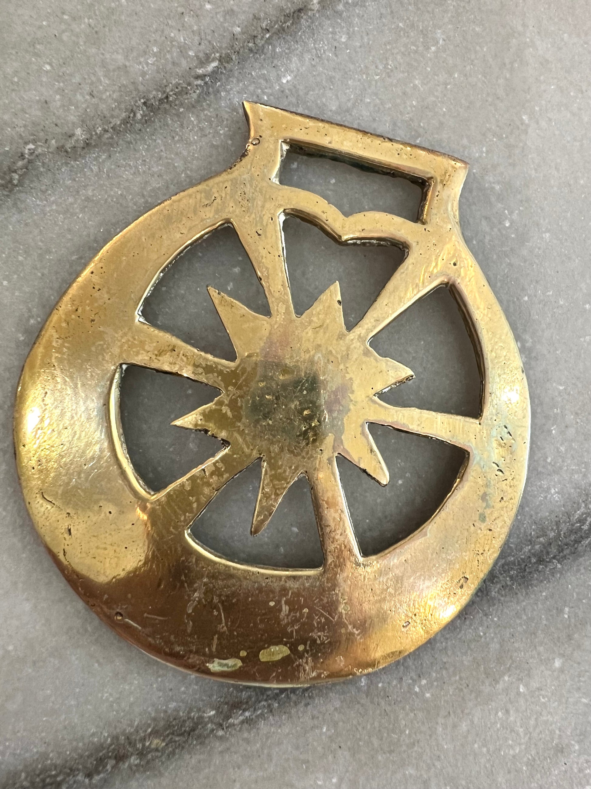 Vintage brass horse medal makes the perfect statement on this necklace paired with green howlite and brass accent beads. Adjustable 15.15-17".
