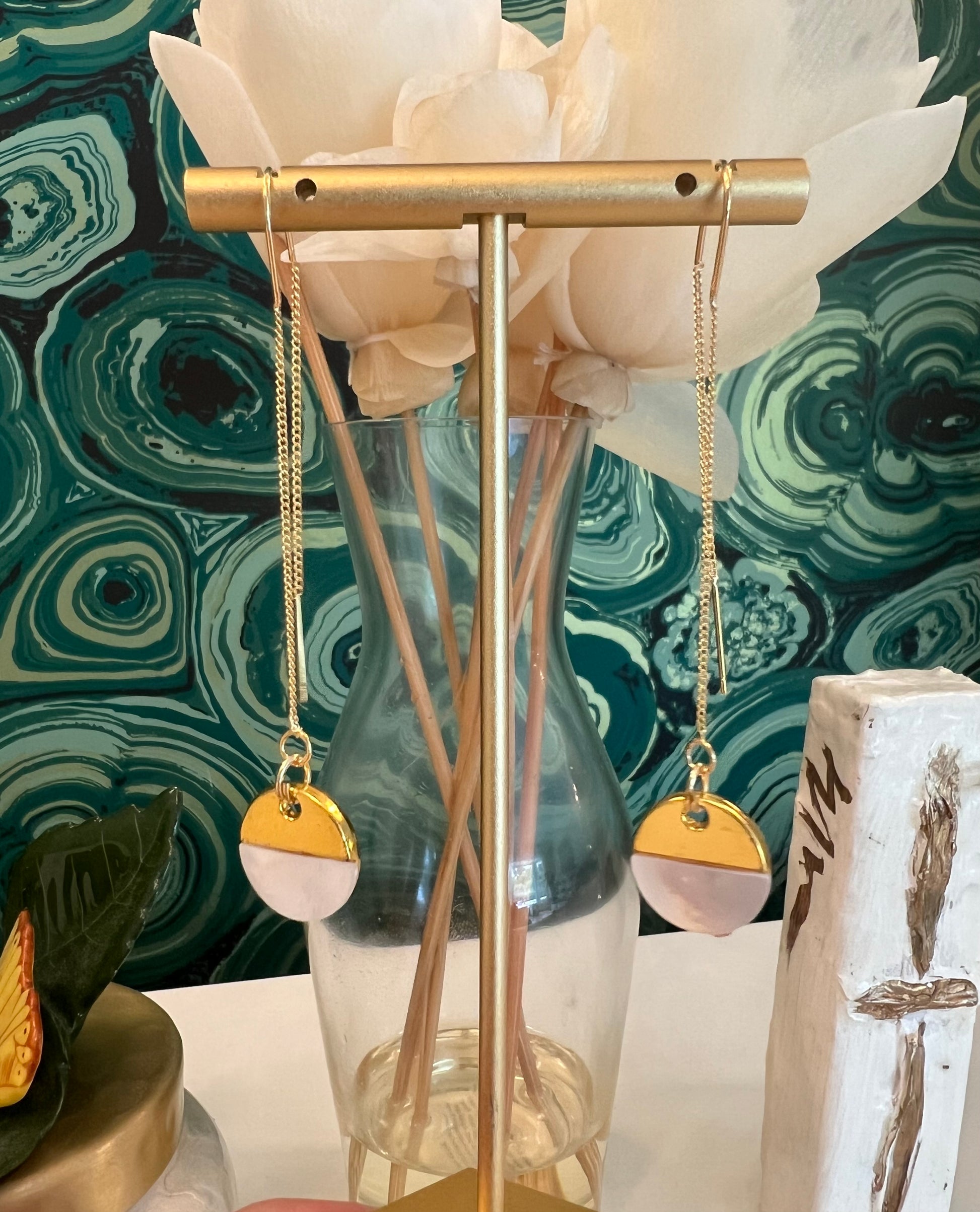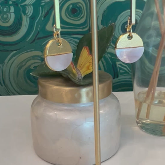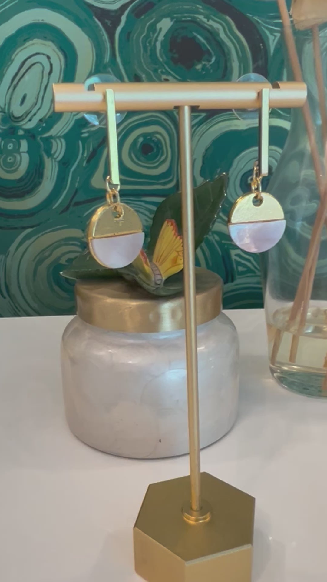 Mother of Pearl shell pendant earring with gold plated accents. Choose post or threader design. Both are lightweight. Theader design total length 3". Stick 1.5" total length