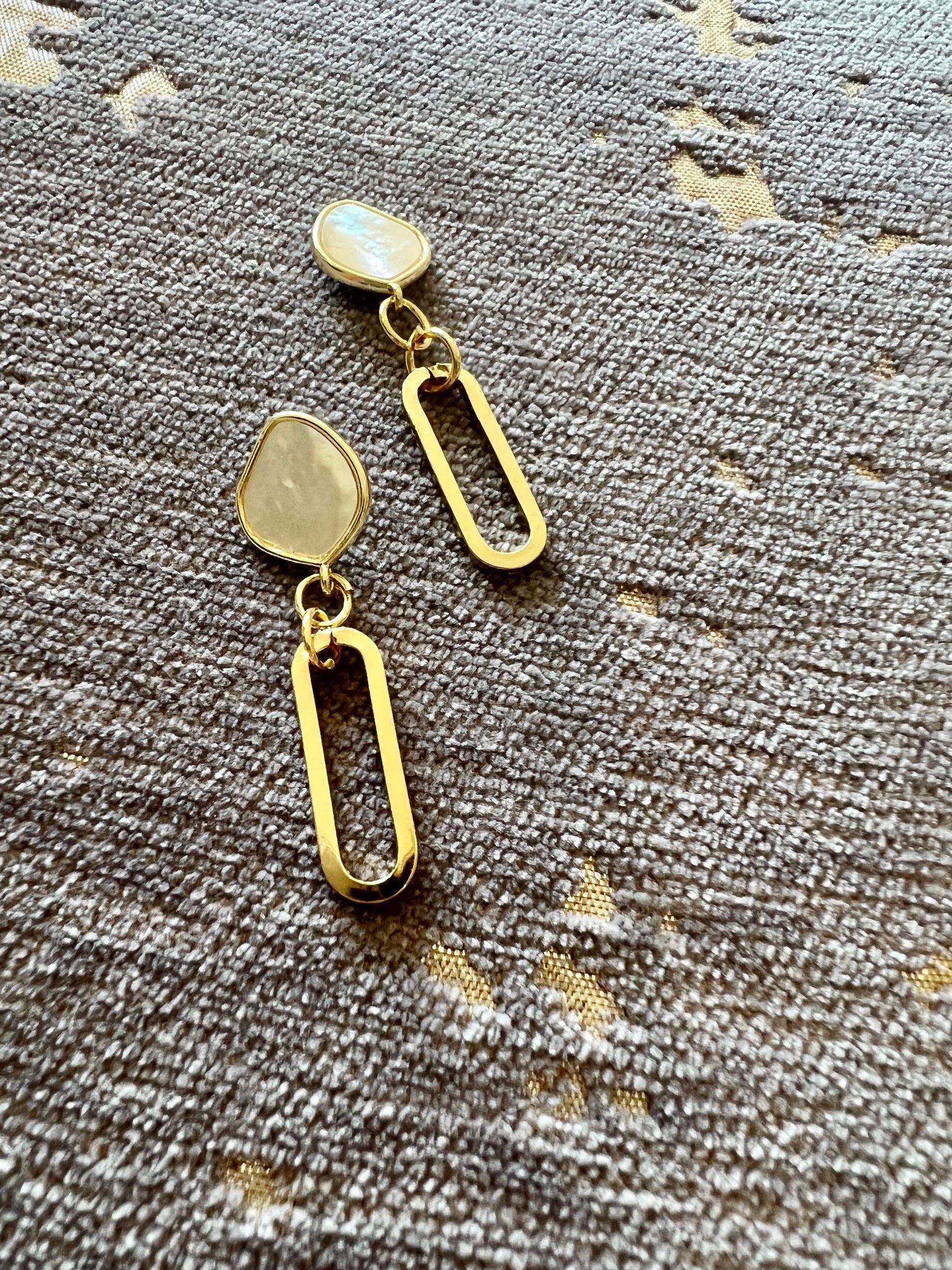 Mother of pearl stone earrings with paper clip dangle