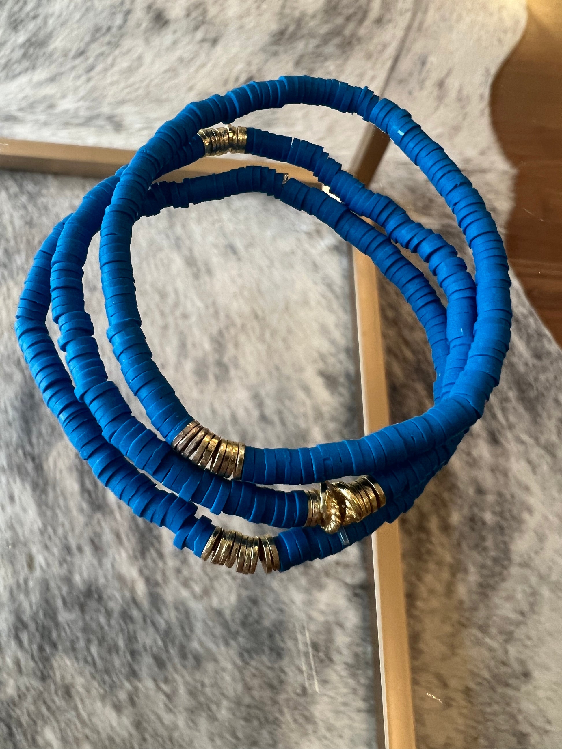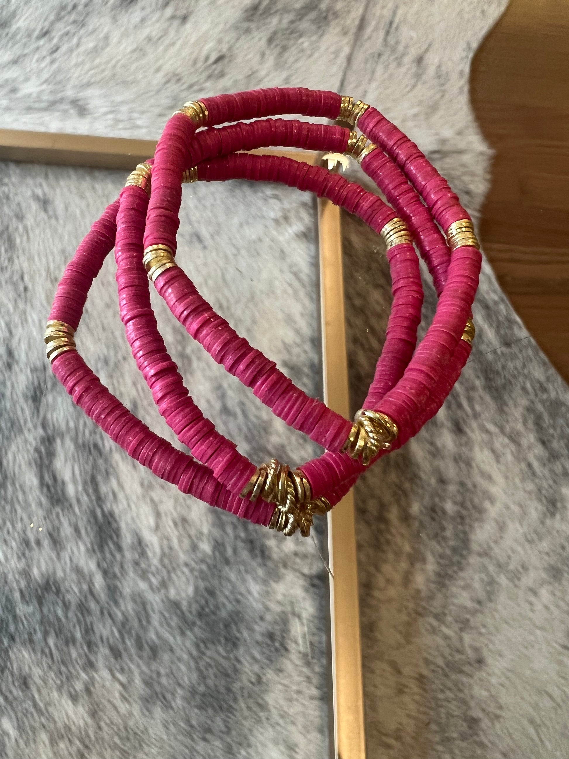 Vinyl beads with scattered gold spacers . Available in a variety of colors. Message for a specific